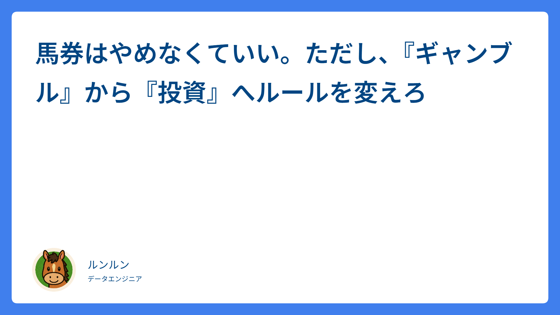 馬券はやめなくていい。ただし、『ギャンブル』から『投資』へルールを変えろ