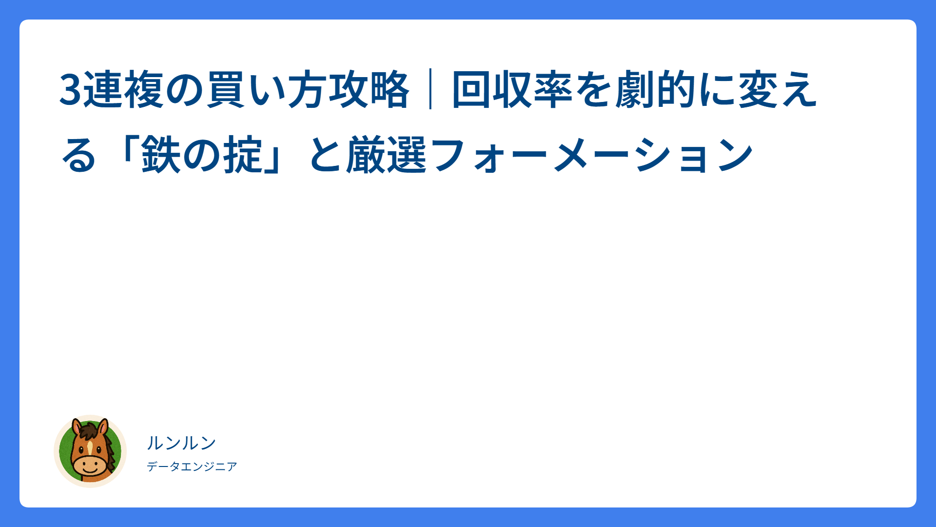 特に今回の動画は、多くのファンが陥りがちな「3連単の罠」について鋭く切り込んでおり、中級者へのステップアップを目指す方に強く推薦したい内容です。