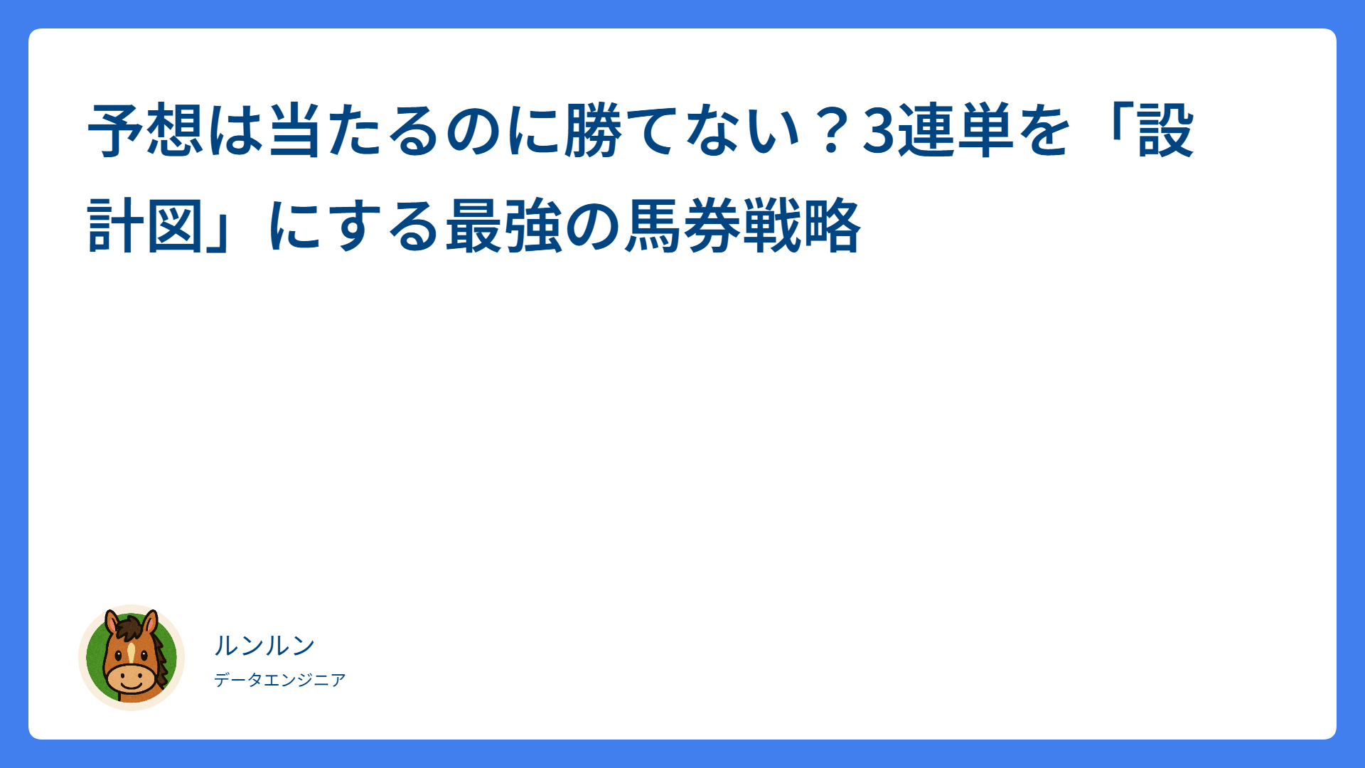 予想は当たるのに勝てない?3連単を「設計図」にする最強の馬券戦略