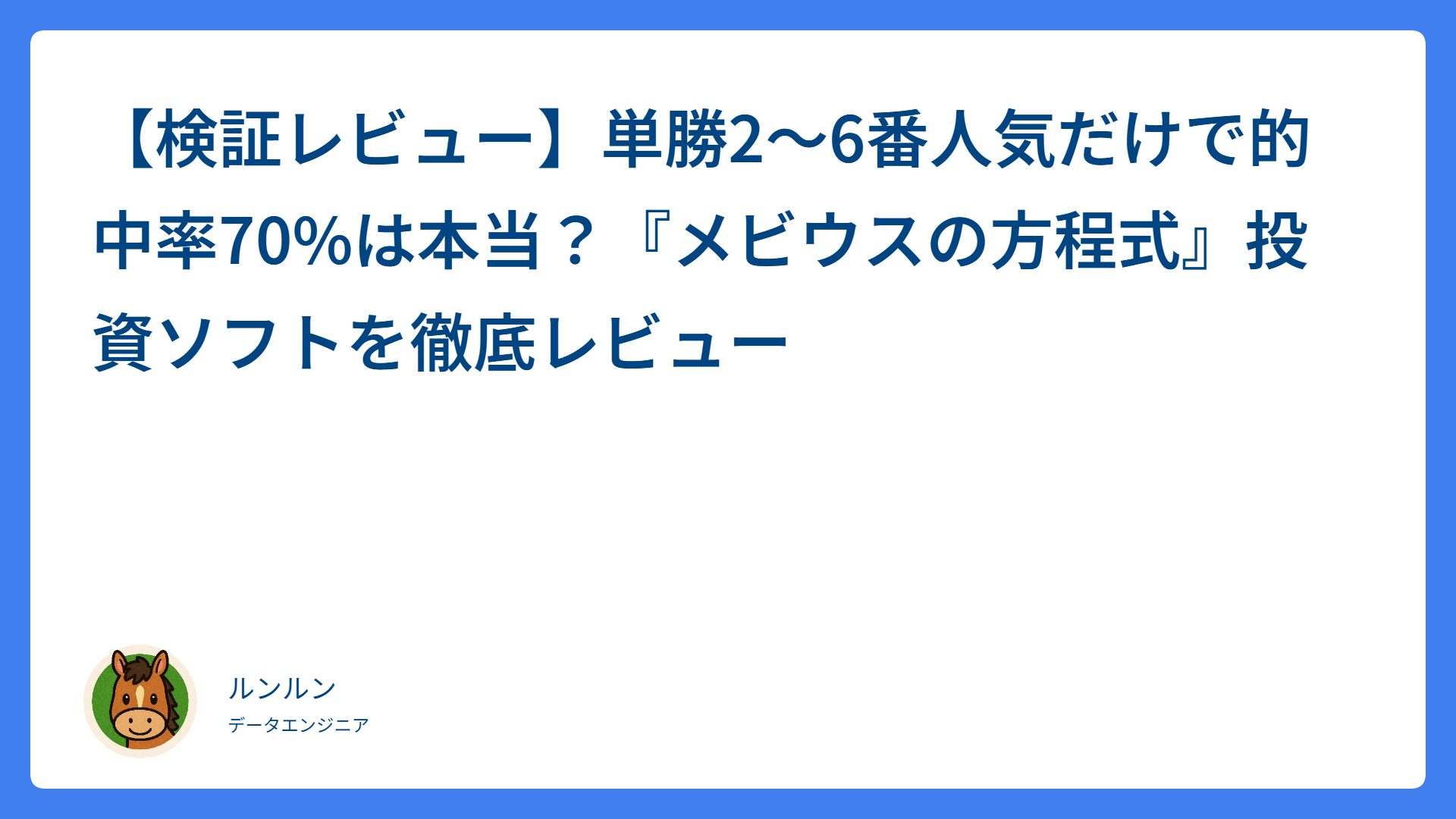 - 「自分でロジックを理解し、納得して運用したい」なら、統計学を武器にする馬券メビウス。