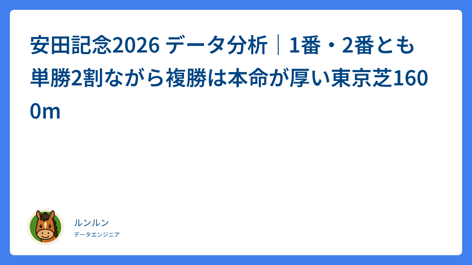 - 安田記念2026 データ分析|1番・2番とも単勝2割ながら複勝は本命が厚い東京芝1600m — 直前の東京マイルG1