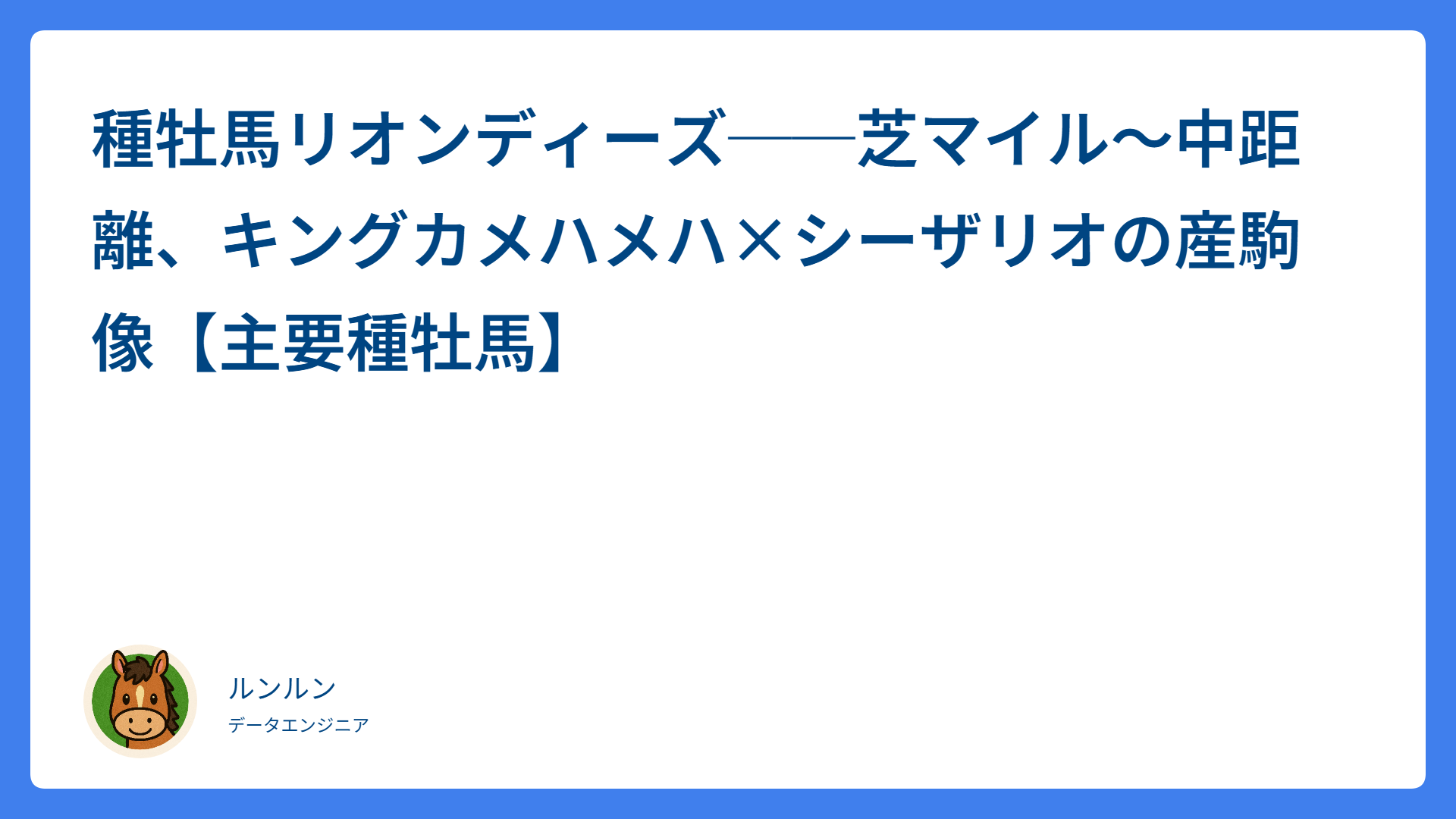 シリーズ全記事の一覧・テーマ別は種牡馬記事一覧(ハブ)を参照。