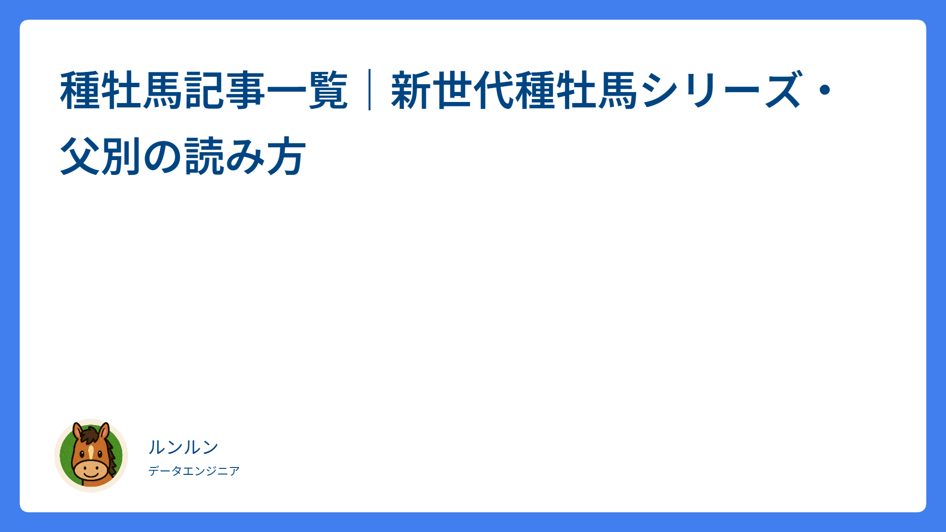 シリーズ全記事の一覧・テーマ別は種牡馬記事一覧(ハブ)を参照。
