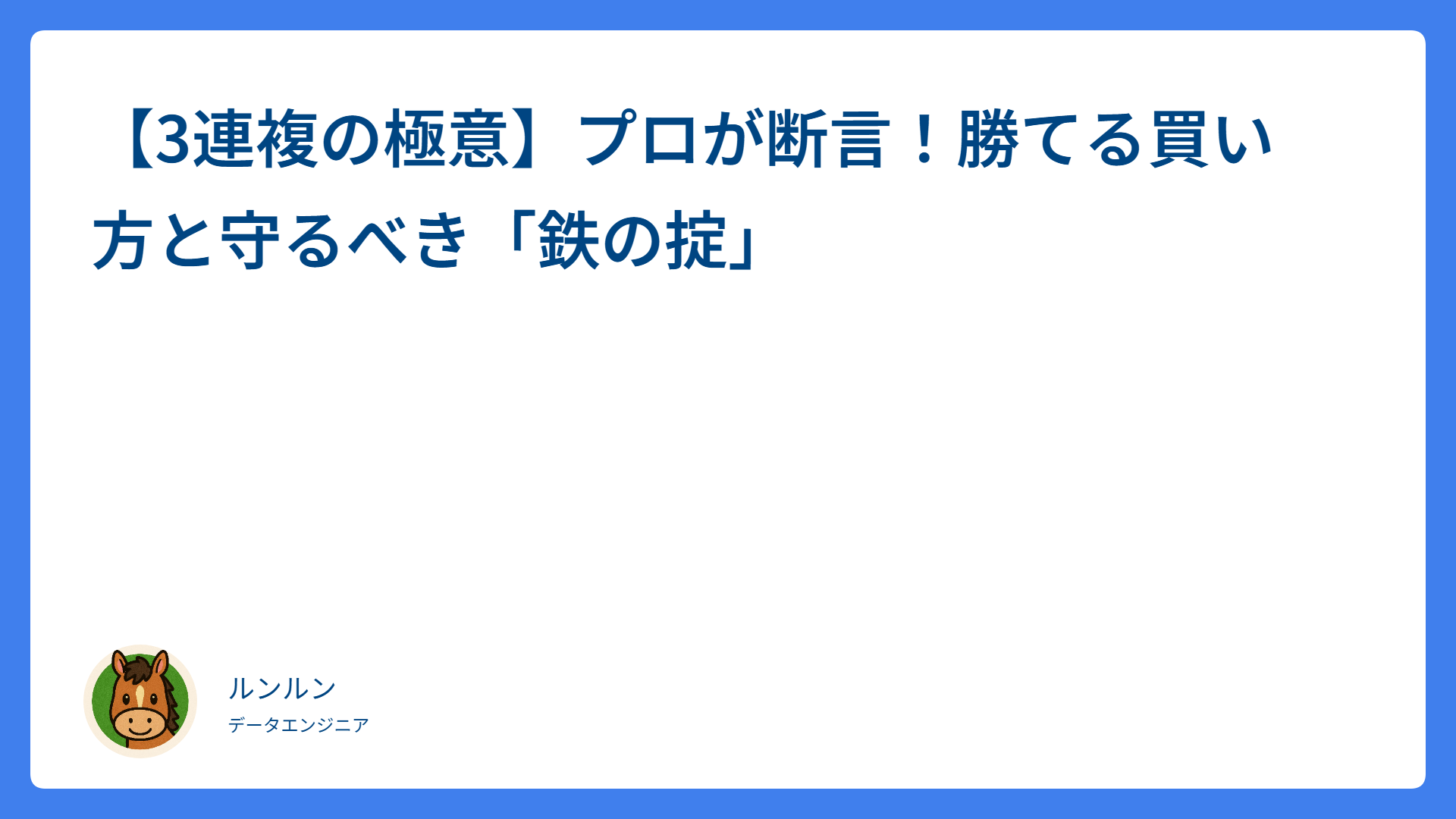 動画を見る時間がない忙しい皆さんのために、馬券の回収率を劇的に変える重要ポイントを凝縮してまとめました。