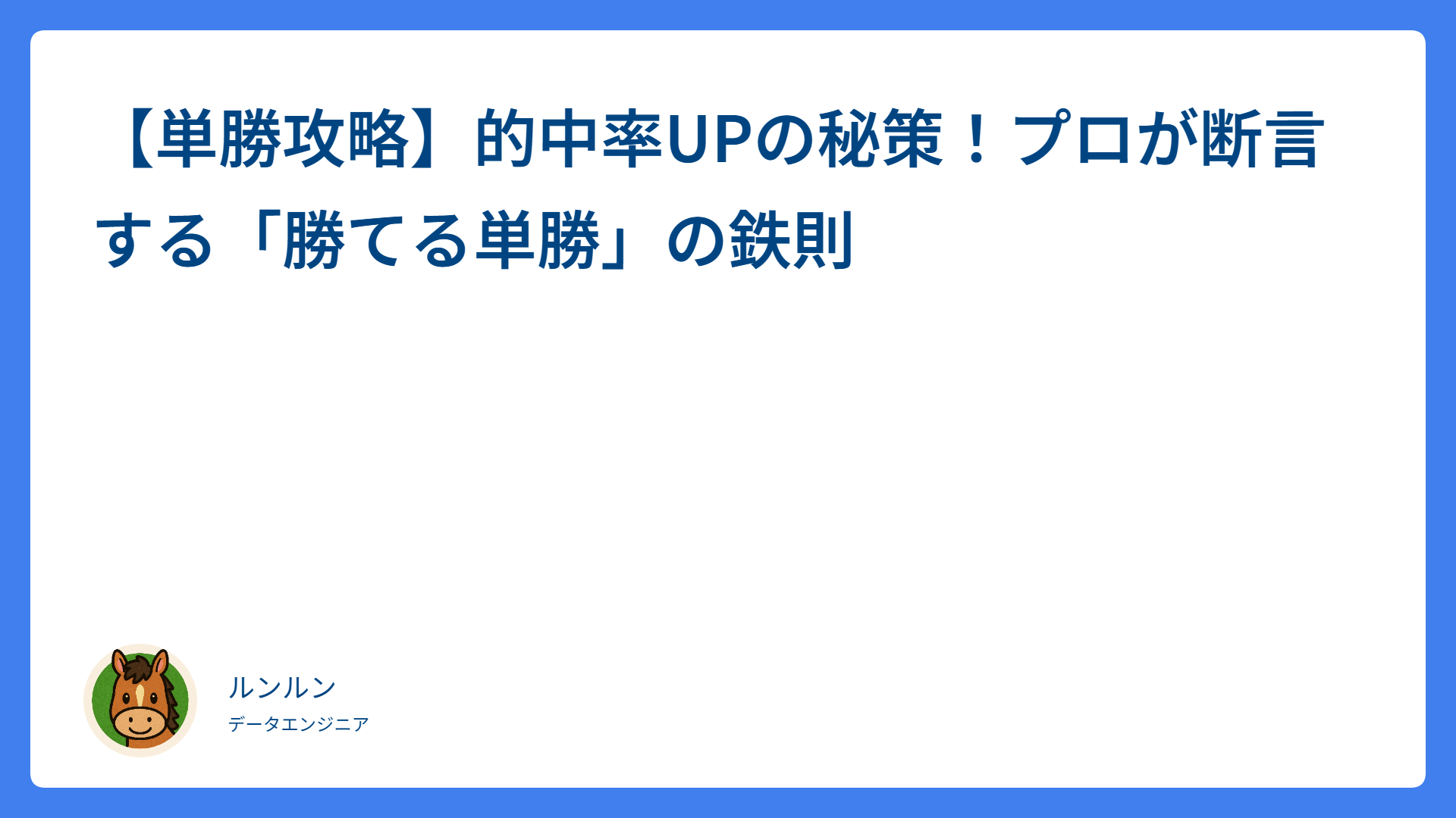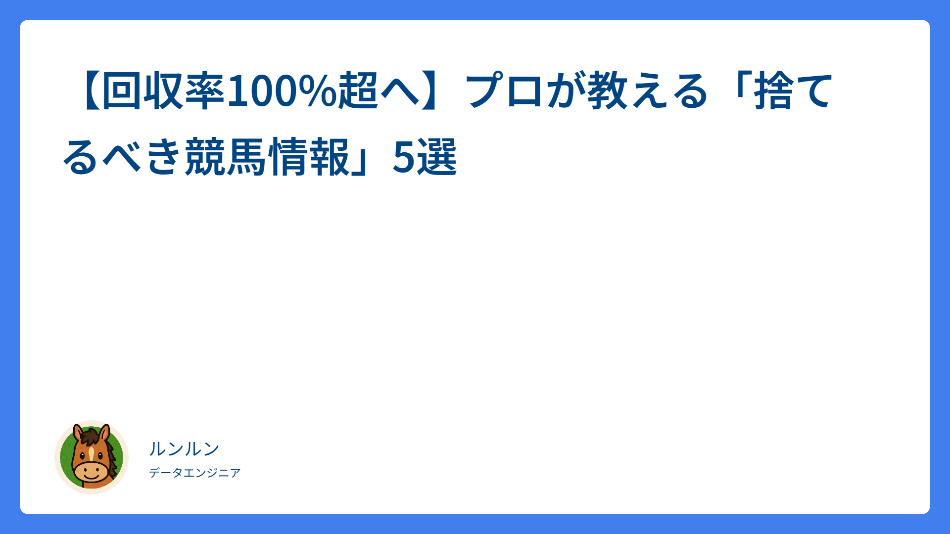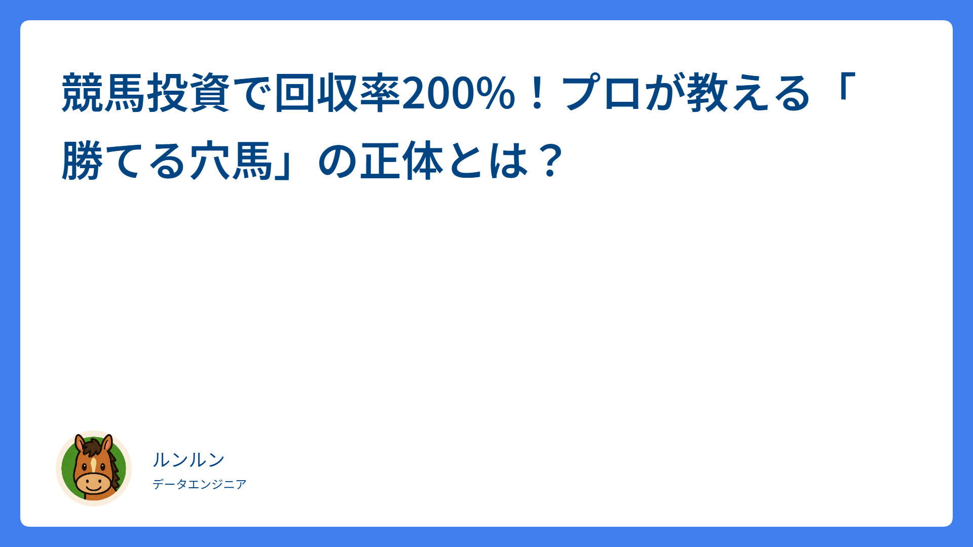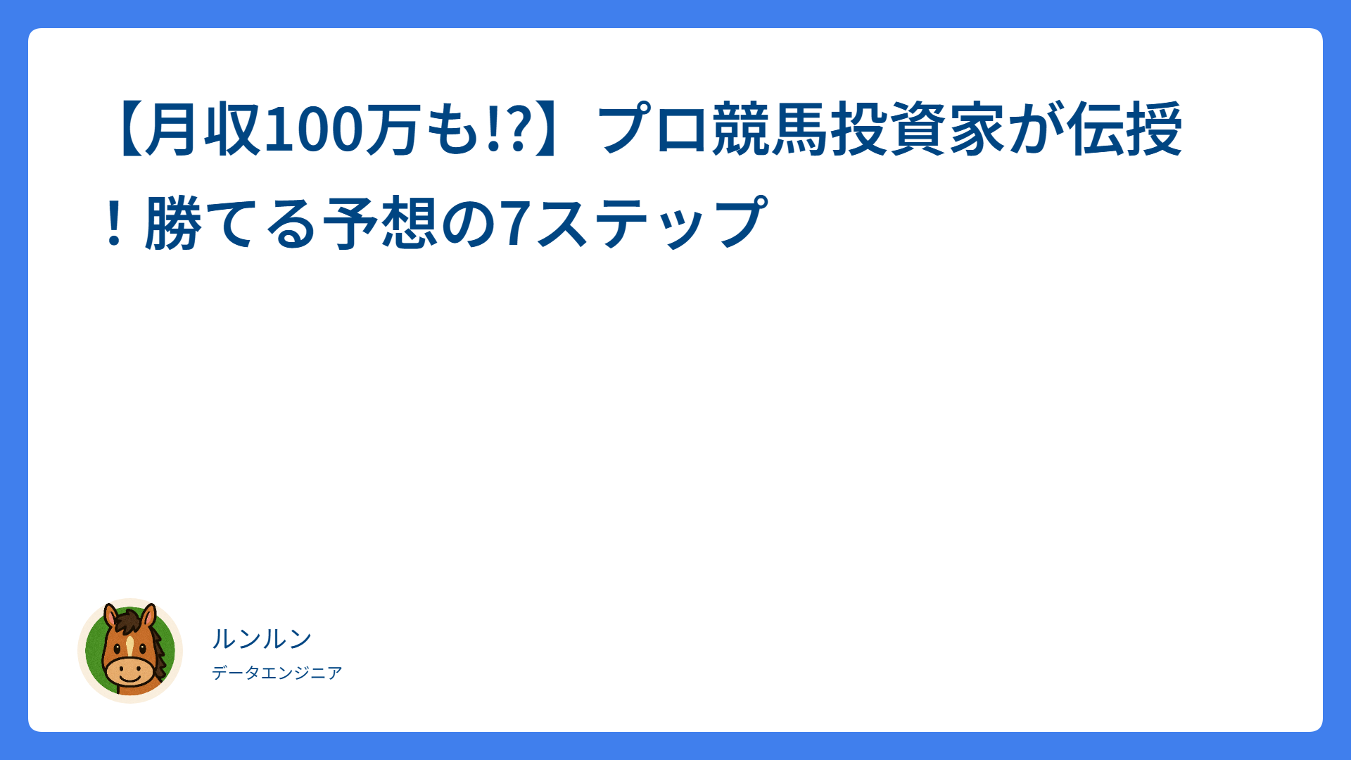 はじめまして。競馬のデータ分析を中心に情報発信をしているルンルンです。