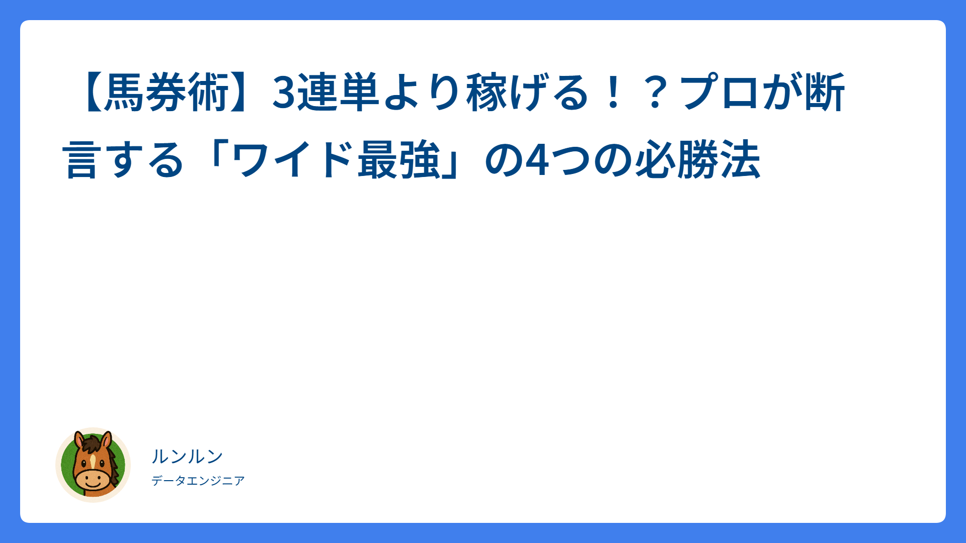 勝ち続けるより、負けを受け入れながら戦略を貫く姿勢が、長期的な回収率につながっていく。