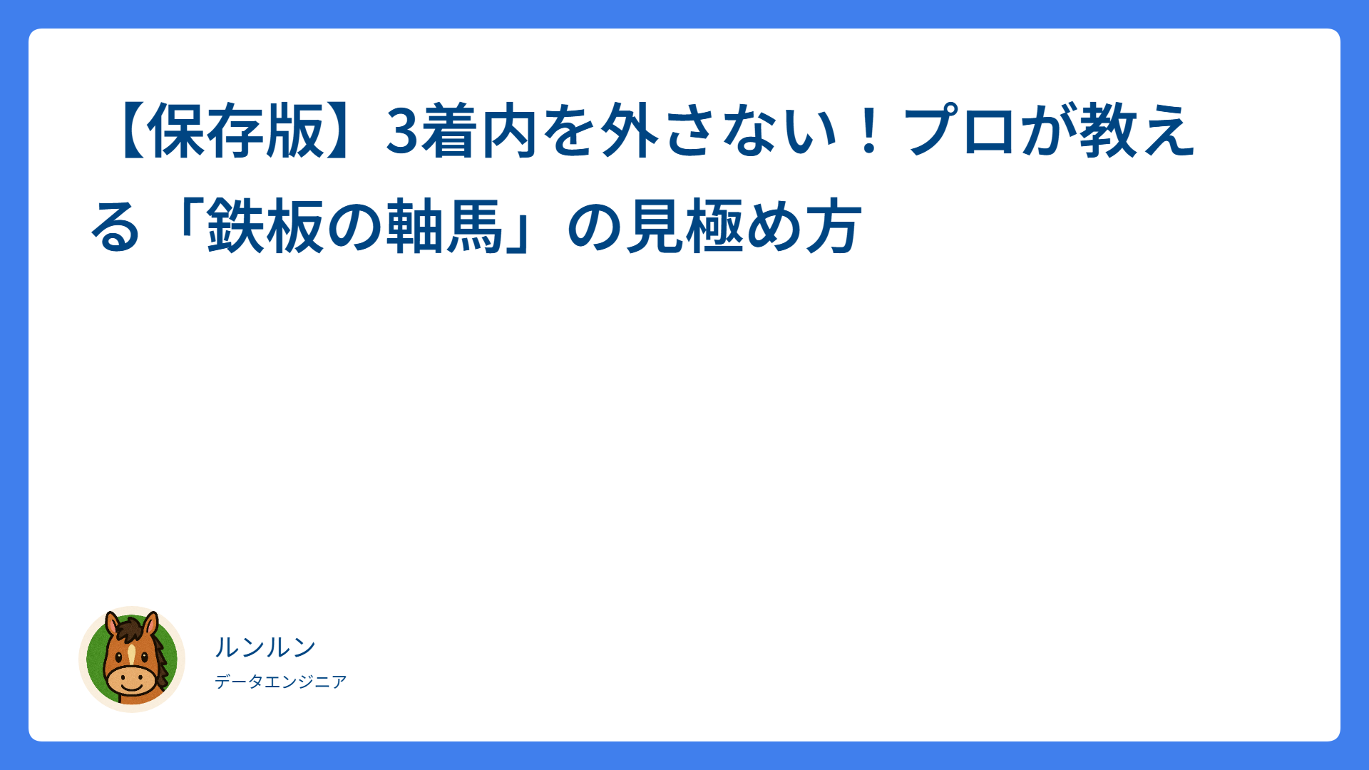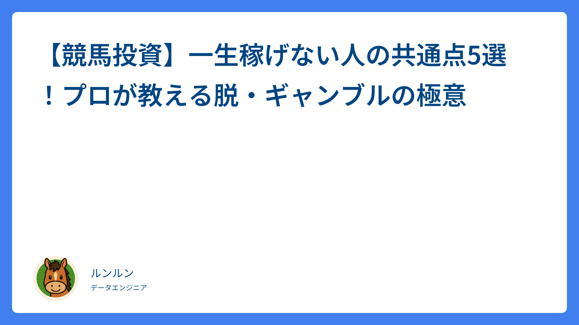 CATEGORY 馬券 【パドック攻略】元牧場関係者が暴露!馬券に直結する「4つの視点」 2026.01.28 馬券 saratogax 明日の馬券に役立つ競馬データ分析 【単勝攻略】的中率UPの秘策!プロが断言する「勝てる単勝」の鉄則 2026.01.24 馬券 saratogax 明日の馬券に役立つ競馬データ分析 【競馬投資】一生稼げない人の共通点5選!プロが教える脱・ギャンブルの極意 2026.01.23 馬券 saratogax 明日の馬券に役立つ競馬データ分析 競馬投資で回収率200%!プロが教える「勝てる穴馬」の正体とは? 2026.01.23 馬券 saratogax 明日の馬券に役立つ競馬データ分析 【月収100万も!?】プロ競馬投資家が伝授!勝てる予想の7ステップ 2026.01.22 馬券 saratogax 明日の馬券に役立つ競馬データ分析 【軍資金1000円】競馬プロが断言!少額でも着実に稼ぐ「3つの極意」 2026.01.22 馬券 saratogax 明日の馬券に役立つ競馬データ分析 【保存版】3着内を外さない!プロが教える「鉄板の軸馬」の見極め方 2026.01.22 馬券 saratogax 明日の馬券に役立つ競馬データ分析 【回収率100%超へ】プロが教える「捨てるべき競馬情報」5選 2026.01.22 馬券 saratogax 明日の馬券に役立つ競馬データ分析 【3連複の極意】プロが断言!勝てる買い方と守るべき「鉄の掟」 2026.01.21 馬券 saratogax 明日の馬券に役立つ競馬データ分析