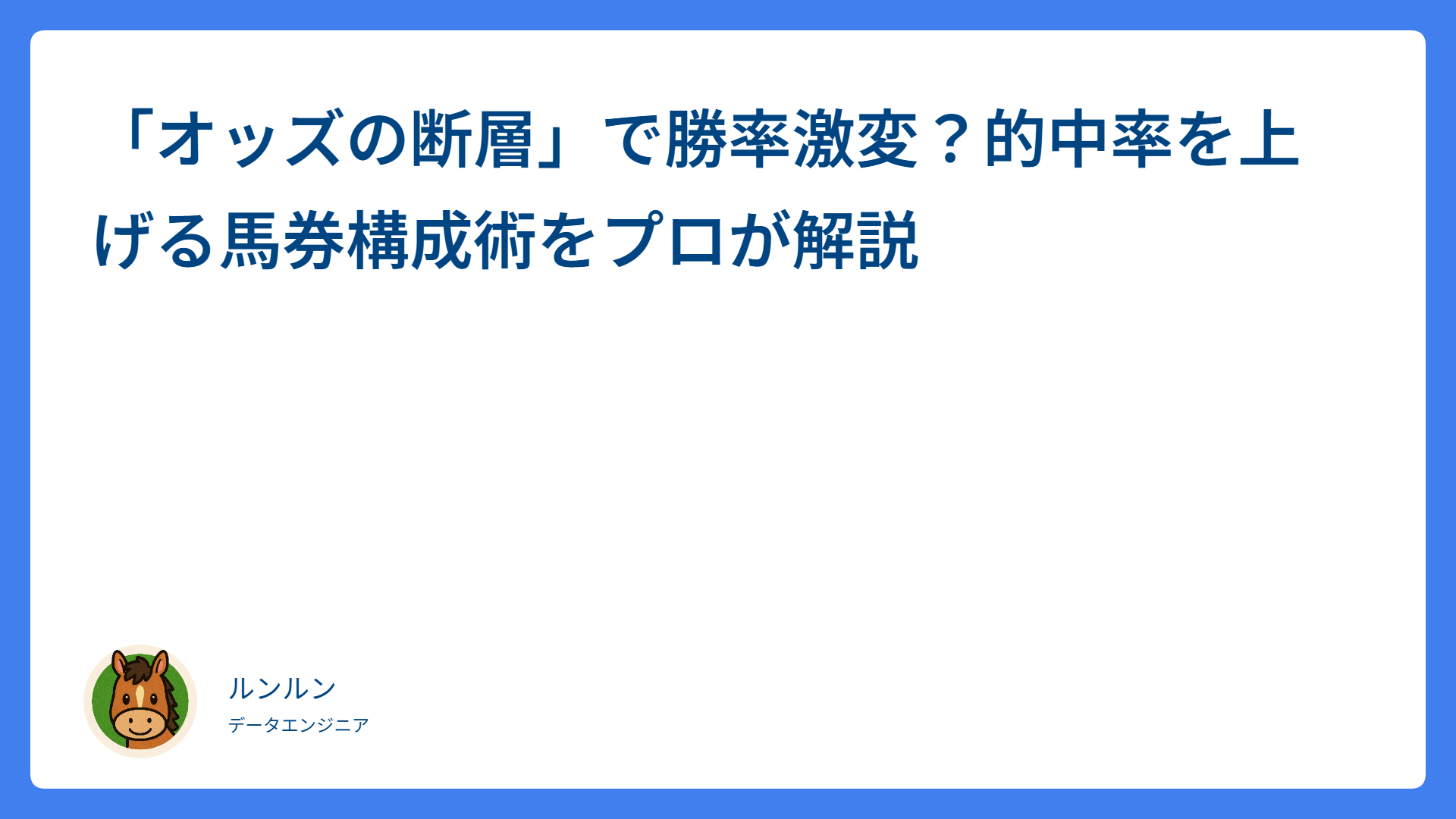 CATEGORY アイデア 「オッズの断層」で勝率激変?的中率を上げる馬券構成術をプロが解説 2026.01.18 アイデア saratogax 明日の馬券に役立つ競馬データ分析 馬券はやめなくていい。ただし、『ギャンブル』から『投資』へルールを変えろ 2026.01.07 アイデア saratogax 明日の馬券に役立つ競馬データ分析 毎月プラス回収率!!投資競馬プロフェッショナル式で誰でも簡単 2025.07.26 アイデア saratogax 明日の馬券に役立つ競馬データ分析 【2026年版】1番人気の勝率が急落する意外な条件|次のレースで狙う“穴馬”とは? 2025.07.26 アイデア saratogax 明日の馬券に役立つ競馬データ分析 単勝2~6番人気を購入するだけで的中率70%の馬券理論 2025.07.26 アイデア saratogax 明日の馬券に役立つ競馬データ分析 マクリ馬が激走!ダートで狙える高回収コース5選 2025.07.13 アイデア saratogax 明日の馬券に役立つ競馬データ分析 マクリがハマる芝コース5選!高回収率が狙える脚質分析 2025.07.13 アイデア saratogax 明日の馬券に役立つ競馬データ分析